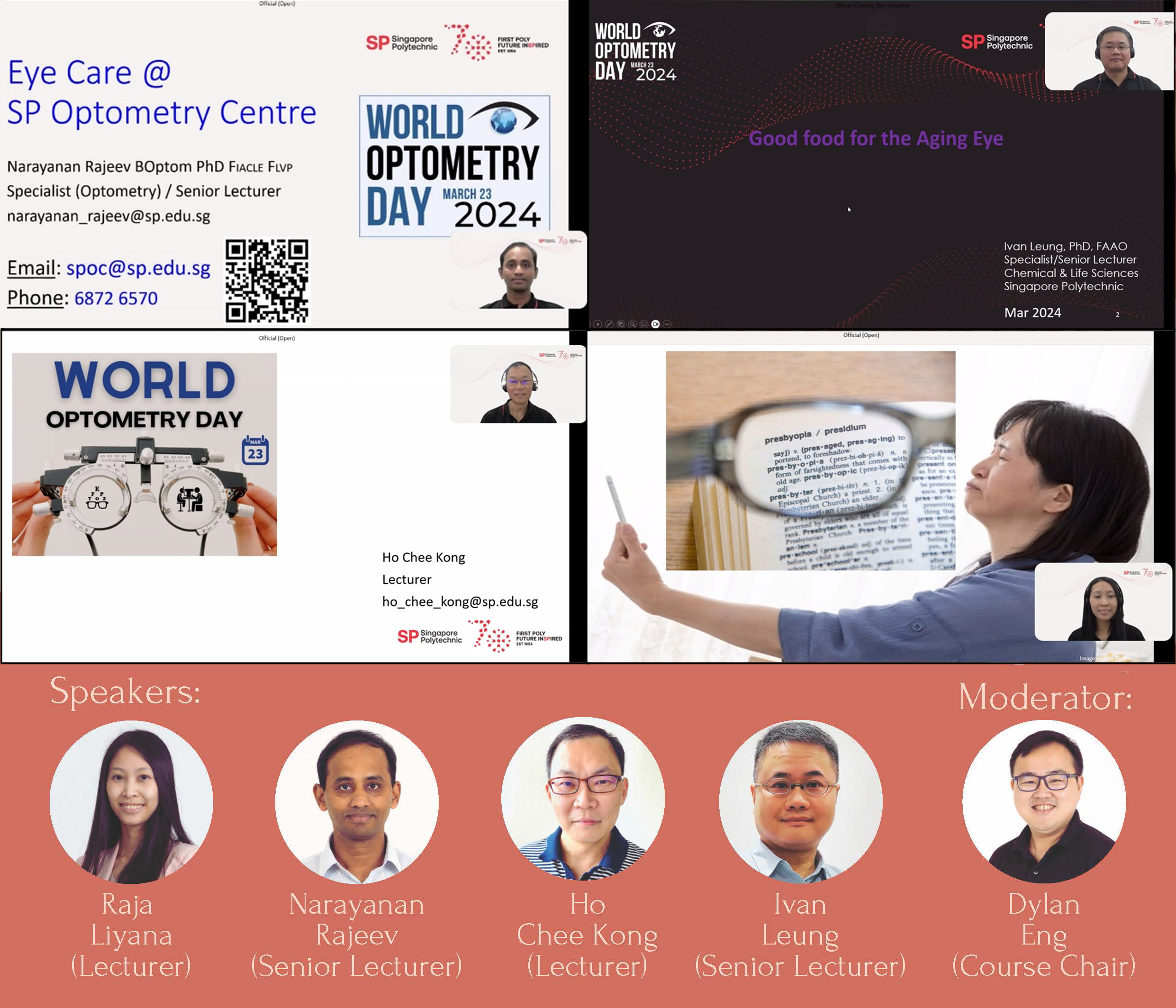 Diploma in Optometry course at Singapore Polytechnic conducted a webinar titled “The Impact of Aging on Our Eyes.” This webinar provided insights into how age-related changes can influence our vision. It was an enlightening session that shed light on the proactive measures we can take to maintain healthy eyesight as we age.