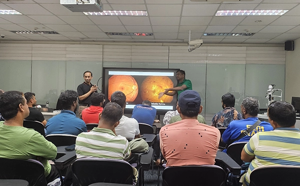 SP Optometry staff doing a sharing with migrant workers on the importance of eye health