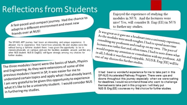 Associate Professor Tham Cheng Khong from the Department of Electrical and Computer Engineering (ECE) at NUS shared, "It has been our pleasure to host SP students under the SP-NUS APP. We look forward to welcoming them to our B.Eng.(EE) programme and hope to see more SP students joining the APP in the coming years."