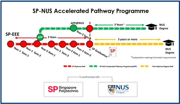The SP-NUS and SP-SUTD Accelerated Pathway Programmes (APPs) are specially designed initiatives that allow students to take selected university modules while pursuing their diploma courses at Singapore Polytechnic (SP). The module credits earned are not only counted towards the completion of the SP diploma but are also recognised by the respective universities for credit exemptions, should students continue their studies at NUS or SUTD.