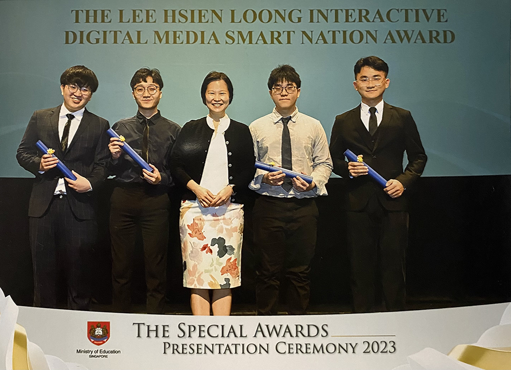 The remarkable team behind this innovation includes Levl Lim Jing Qiang, Liaw Choon Wei, Shi Tingxiao, Dylan Chin Yong Xue and Lim Jia Jun. They were honored to receive this distinguished award from Ms. Gan Siow Huang, Minister of State for Education and Manpower.