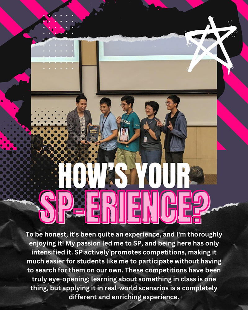 Yue En Qi knew she wanted to join SP back in secondary school after hearing stories shared by her seniors. This motivated her to apply for SP's Diploma in Applied AI & Analytics through the Early Admissions Exercise (EAE). Now, she is thoroughly enjoying her time here, participating in competitions and enriching herself through her CCA!