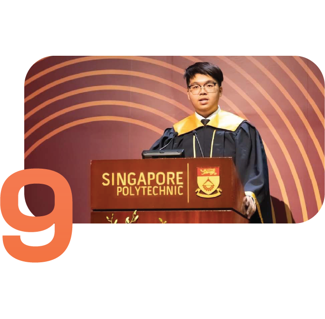 Singapore Polytechnic’s education model is designed to equip students with essential skills, knowledge, and mindsets through three core components: Curriculum, Applied & Professional Training, and Social & Community Learning. These components are supported by two foundational pillars: Pedagogical Innovations and Data and Digital Culture and aim to foster six key graduate attributes: Competency & Versatility, Communication & Collaboration, Creativity, Innovation & Enterprise, Ethics & Responsible Citizenry, Self-Directed & Personal Effectiveness, and a Global Mindset.