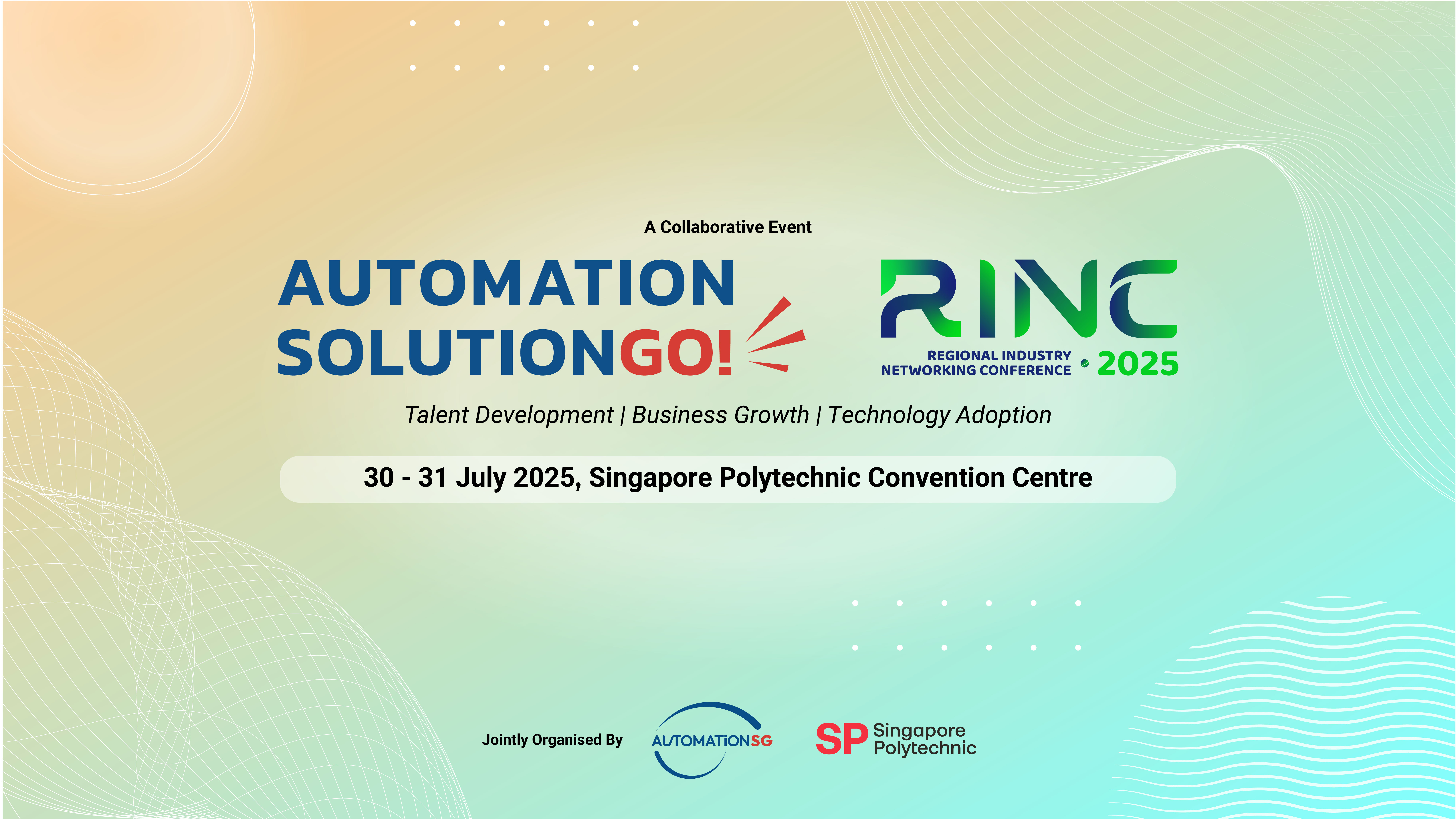 SP and AutomationSG return with Automation SolutionGO! & Regional Industry Networking Conference (RINC) 2025 — a flagship event themed Business Growth, Talent Development, Technology Adoption. This year’s edition brings together forward-thinking enterprises to explore smart manufacturing, cross-border opportunities like the Johor-Singapore SEZ, and practical strategies to drive sustainable transformation through technology, talent, and collaboration.