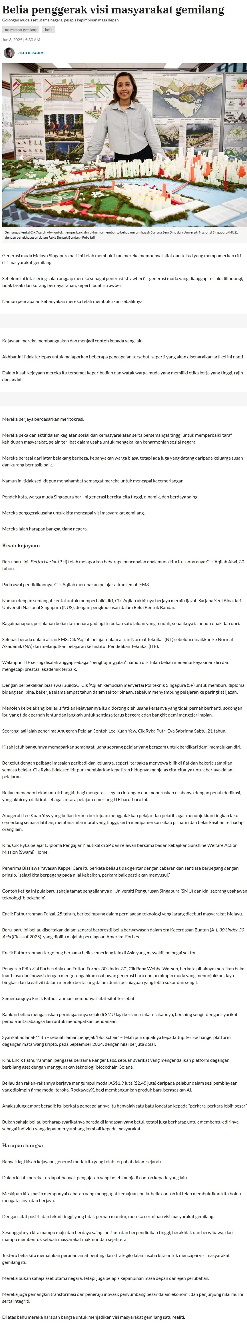 Armed with an iBuildSG scholarship, Ms Aqilah Alwi, 30, entered SP to pursue a diploma in architecture after working for four years in the construction sector, before continuing her tertiary studies. Looking back, she attributes her success to her hard work, her mother's unwavering support, and her constant efforts to keep moving forward and pursuing her dreams.