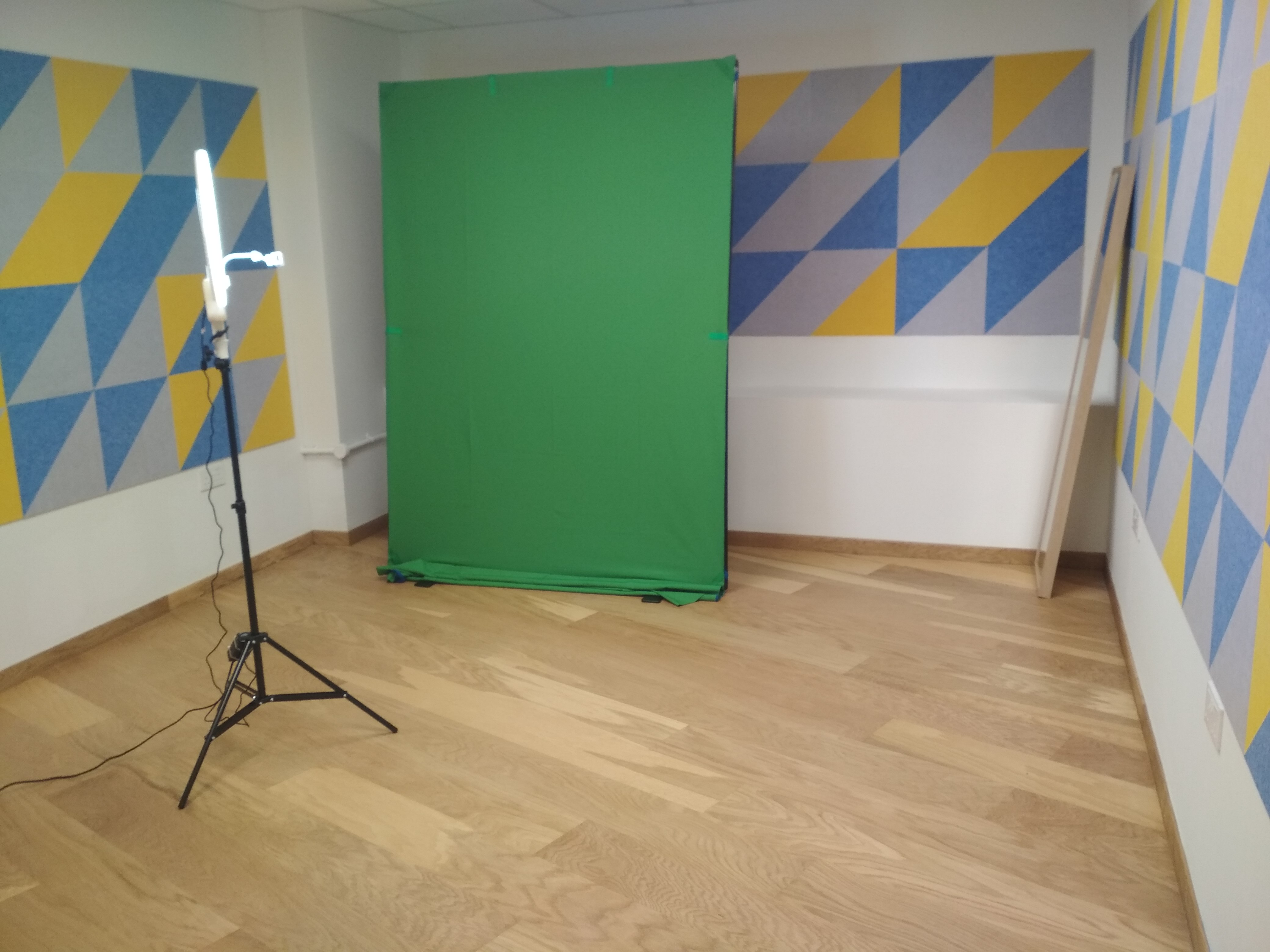 Recording Studio 2 can be used by students & staff for video streaming. Set-up & equipment: 12-inch bi-colour LED ring light, 2m x 1.5m green backdrop screen.User can book a maximum of 2 hours per day, 14 days in advance.