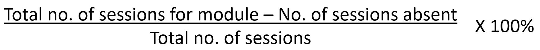 - A warning email will be issued to students whose attendance level falls below 85% for each module.